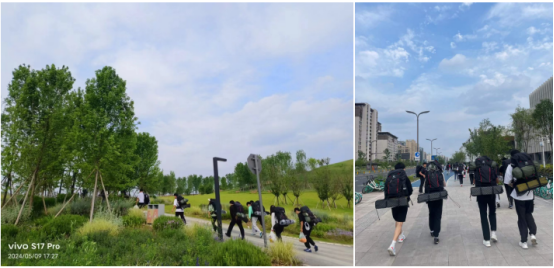 同学们的热情接续了高照的艳阳,背着自己的行囊从学校徒步出发,经过接近半个小时的路程,抵达活动举办地,一路上欢声笑语,激动与期待充斥在每一位同学的脸庞,没有一位同学掉队,更没有一位同学抱怨,仿佛身上接近三十斤的行囊空若无物。