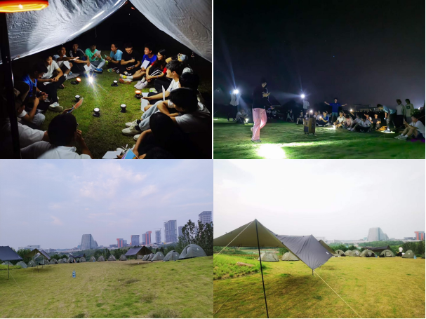 露营的晚上也不单调,举行了一次别开生面的“盗梦空间”拓展活动,调动了所有参与同学的积极性。同学们还一起组织进行了一场草坪晚会,热闹非凡。巧妙的将所学与所想所做相结合,真正实现了教学结合实践,实践检验教学的完美融合。走进自然,又保护自然,为深入贯彻新发展理念,落实习近平生态文明思想,第二天撤营后,现场也没有留下一丁点来过的痕迹,做到了真正的无痕露营。同学们都说:“这么美的地方,不能因为我而被破坏。