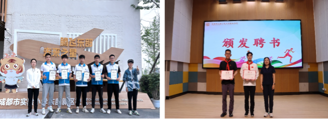 成都实验小学东部新区校区体育组领导对我院师生志愿者在运动会中的服务给予高度认可,为我院志愿者颁发证书并合影留念。通过本次活动,我院志愿者们不仅将自己的专业知识融入到志愿服务当中,也再次为XK星空与成都实验小学东部新区校区进行长期、多维度的深度合作奠定良好基础。